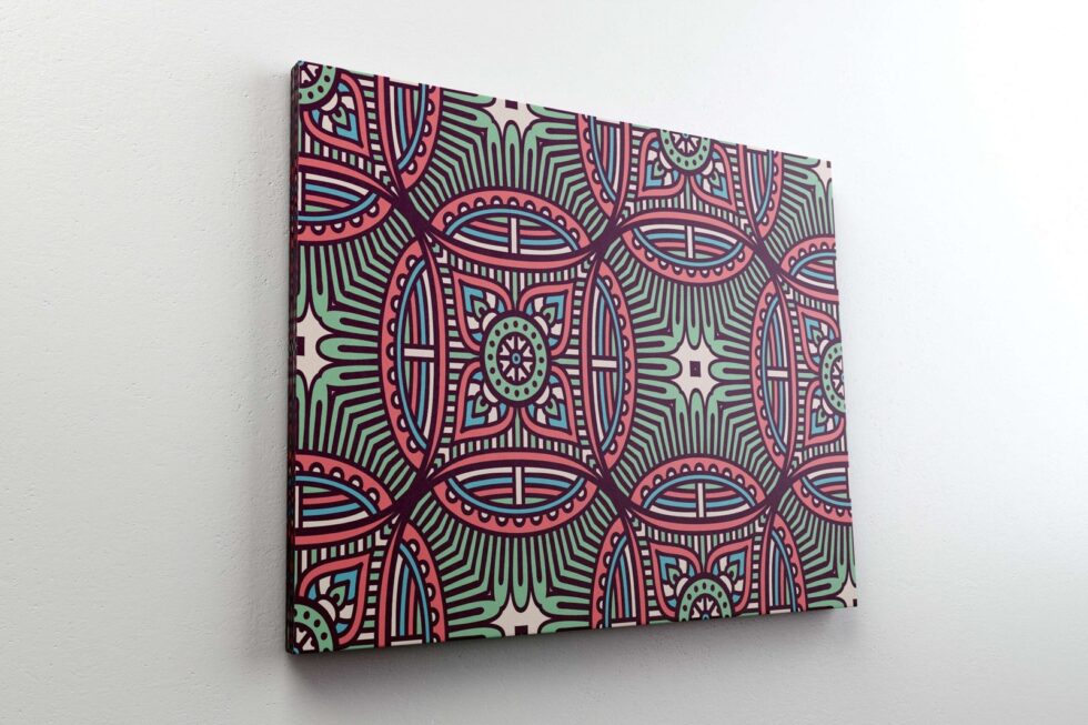 A stunning golden round frame painting to bring serenity to any bedroom.