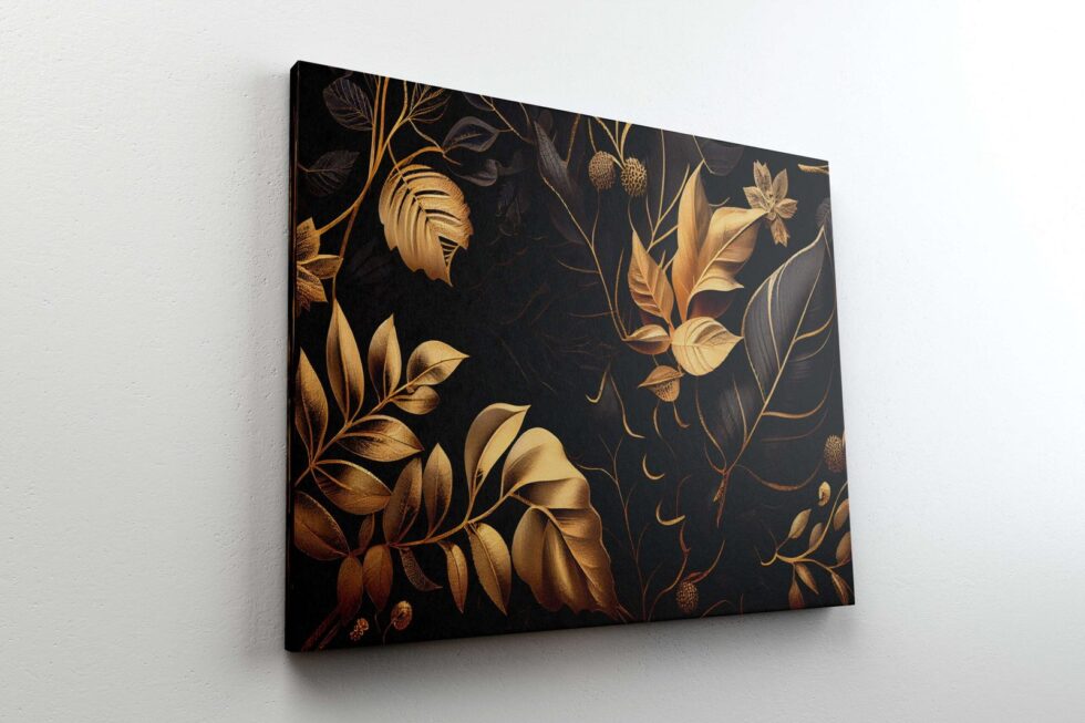 Golden sunburst abstract art on a black canvas for luxurious offices.